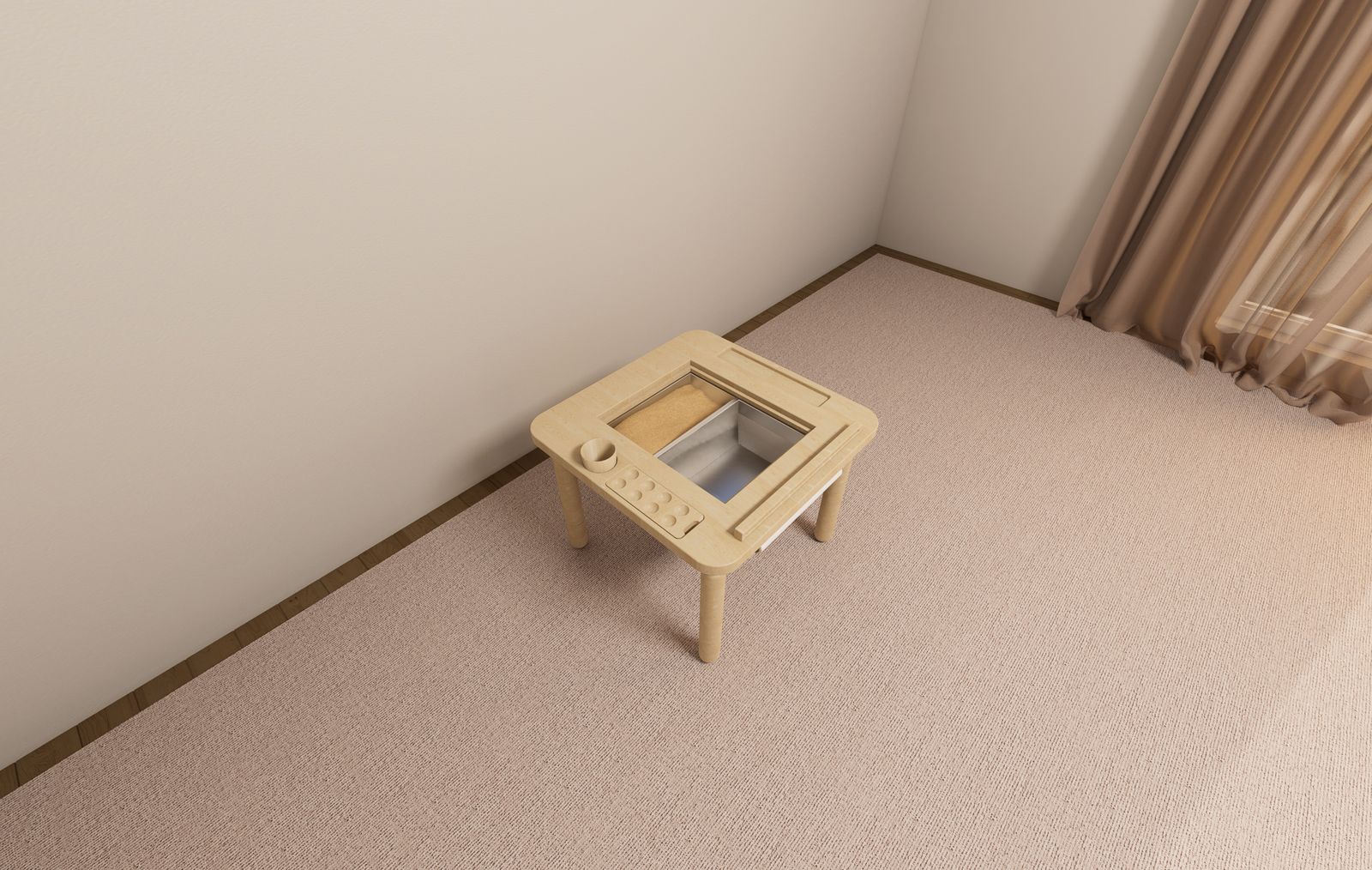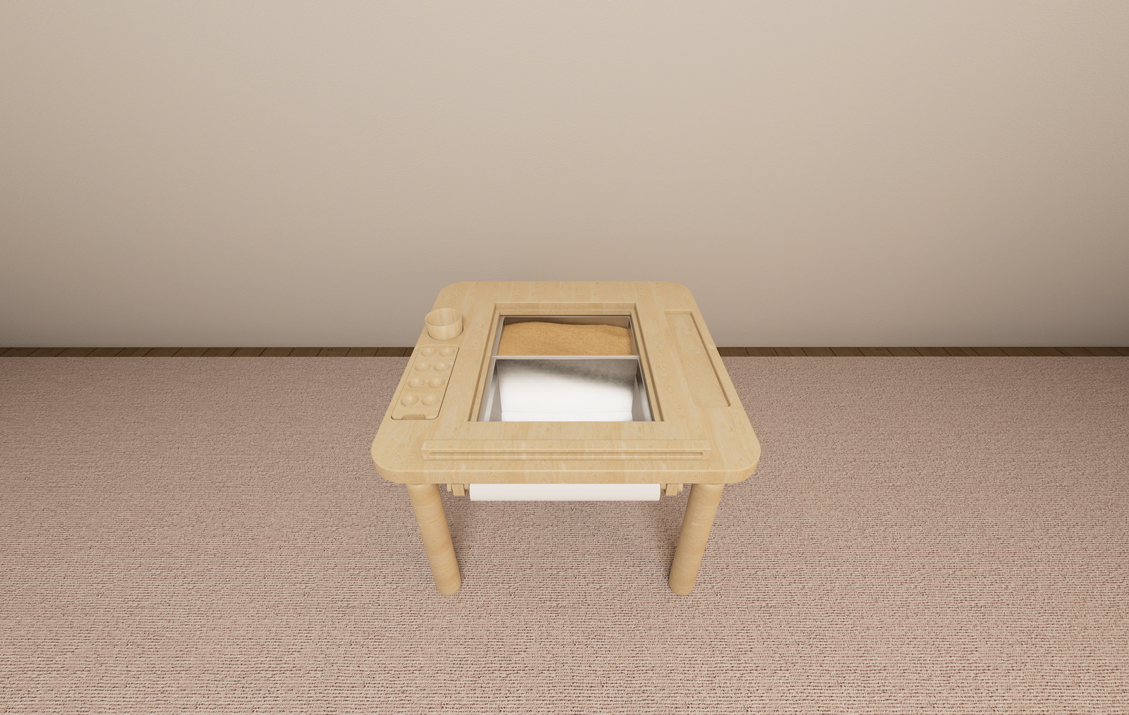 This activity table blends learning, play, and sensory exploration in one engaging space. Activities like scooping, pouring, and sorting help build coordination and focus, while sensory play naturally calms and regulates emotions. Built-in compartments keep materials organized and encourage independence from an early age.