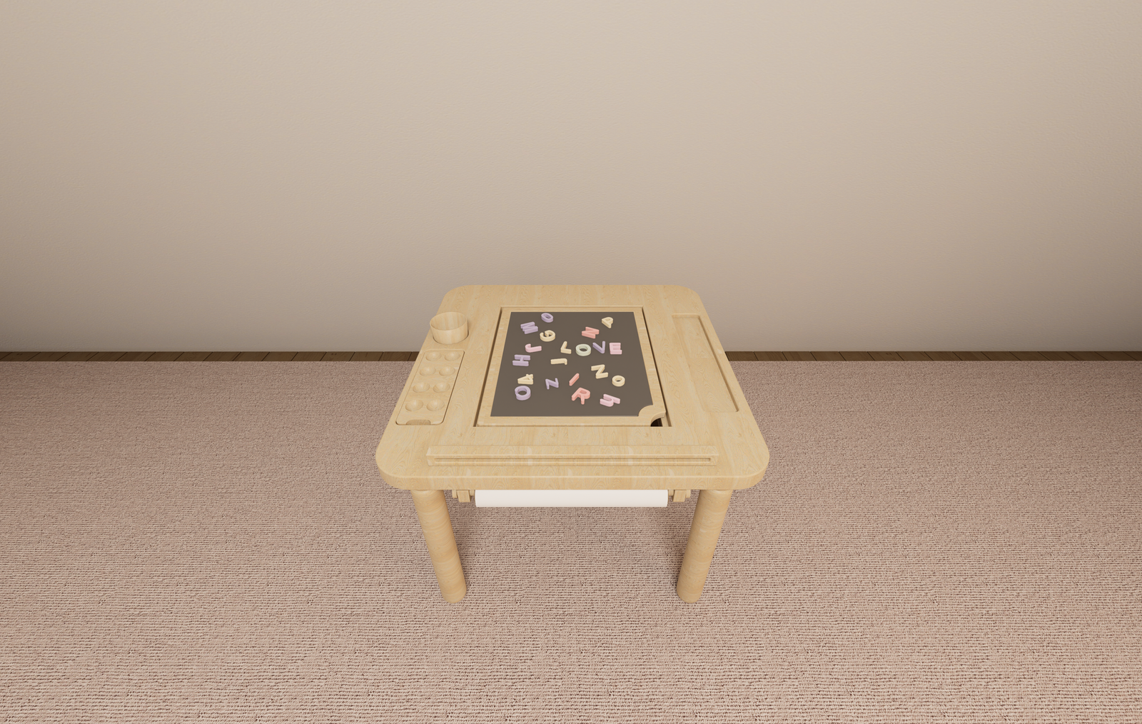 Built-in Storage – Handy compartments for crayons, art supplies, game pieces, and sensory play materials.